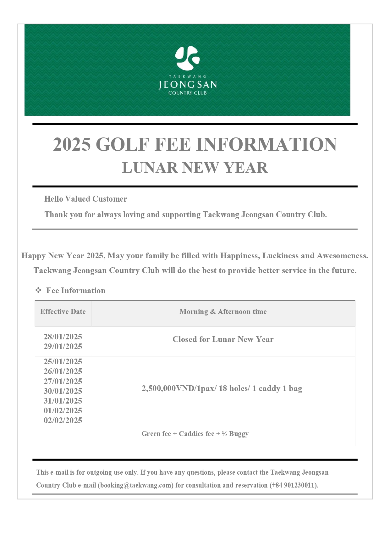 2025 GOLF FEE INFORMATION - LUNAR NEW YEAR