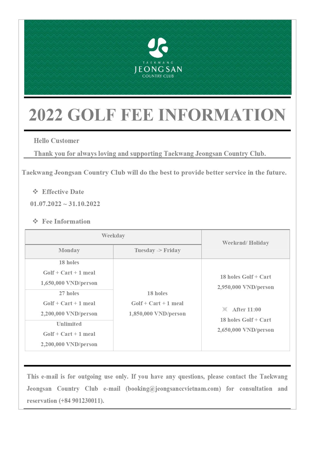 VISITOR GOLF FEE 01.07.2022 - 31.10.2022